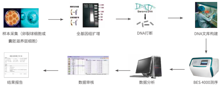 本检测对体外受精获得的胚胎活检物进行全基因组扩增,并采用高通量测序法,结合生物信息学分析,准确判断全部23对染色体的非整倍体异常,准确定位4Mb以上的微缺失微重复片段。该检测用来指导胚胎移植,可有效提高体外受精-胚胎移植(IVF-ET)治疗的临床妊娠率和活产率,降低早期流产的风险,降低患有染色体相关疾病缺陷患儿的出生率。