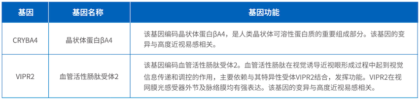通过检测人体与生俱来的易感基因,对高度近视发生风险进行评估,从遗传角度找到基因中影响高度近视的隐患,有针对性规避导致其发生的危险因素,从而有效预防高度近视的发生。