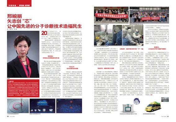 近日,中国期刊中唯一以人物报道为重点的大型综合性新闻半月刊《中华英才》专访了清华大学医学院研究员、博士生导师,生物芯片北京国家工程研究中心常务副主任,博奥生物集团有限公司高级副总裁,北京博奥j9九游会官网生物技术有限公司总裁邢婉丽,深入报道了博奥在抗疫期间全力投入科研攻关的战“疫”历程。