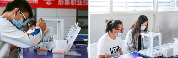 此次技能大赛共有来自生命科学服务部、医学服务部、科研管理中心研发一部和研发二部、HLA服务部和实验诊断部等部门共168名员工报名参加,比赛分为笔试与实操两部分。笔试是基础,只有掌握扎实的实验室规章制度和管理、生物安全、仪器操作注意事项等基础知识,才能练就过硬的专业技能。今年笔试部分增加了新型冠状病毒相关题目,结合疫情防控需要,强化相关检测安全知识。实操部分将理论与实践相结合,考验实验员移液器操作技能:分别取3次液体进行称量,考核移液器使用的重复性、准确性及仪器操作是否规范,着眼业务能力和熟练程度比拼。