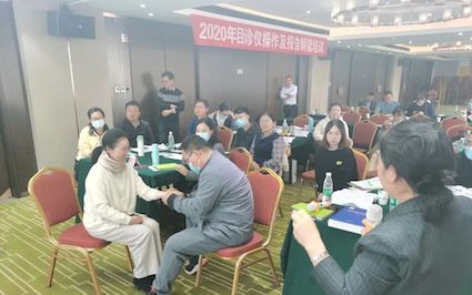 培训除了延续前两期目诊理论与实操训练课程外,还设立了医师现场诊疗与目诊仪报告对比环节,由河南中医药大学中医诊断教研室何磊博士担任坐诊医师,通过“望、闻、问、切”为在场学员进行诊疗,诊疗结果与学员眼象报告高度一致,学员纷纷表示赞叹。