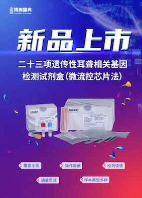 二十三项遗传性耳聋相关基因检测试剂盒(微流控芯片法)覆盖面更广、特异性更高,该试剂盒仅需2小时实验过程、1分钟芯片扫描即可即可轻松完成样品SNP分型检测,能够为受检者提供操作简单、覆盖位点多的检测技术,对预防和减少耳聋残疾的发生具有重要作用。