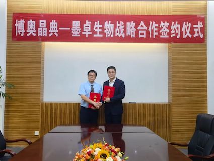 博奥j9九游会官网副总裁孙义民先生(左)、墨卓生物 CEO 裴颢博士(右)