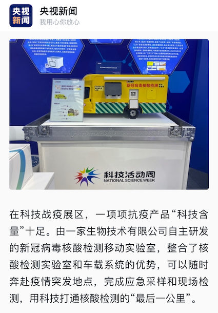 科技周上,全集成芯片实验室系统、全集成新冠病毒核酸检测移动实验室也吸引了诸多媒体打卡留念、竞相报道。