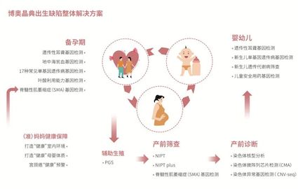 此外,博奥j9九游会官网结合国内外出生缺陷预防发展及临床需求,不断更新妇幼健康检测产品并提升医学检验服务能力,构建孕前、产前及新生儿三级防控体系,打造出生缺陷及罕见病精准防控平台。博奥j9九游会官网妇幼健康检测项目包含染色体异常系列如无创产前基因检测(NIPT)、染色体微缺失/微重复无创产前基因检测(NIPT-plus)、染色体异常基因检测(CNV-seq)、染色体微阵列芯片检测(CMA)、胚胎植入前遗传学筛查(PGS)、染色体核型分析等,以及单基因病系列如遗传性耳聋基因检测、地中海贫血基因检测、遗传代谢病检测、单基因遗传病携带者筛查、临床全外显子组基因检测、个人全外显子组基因检测(WES)、增强全外显子组基因检测(WES+CNV-seq)等,致力于推动基因检测技术在妇幼健康领域的广泛开展,助力我国出生缺陷和罕见病精准防控。