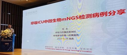 蚌埠医学院第一附属医院主任医师张永教授作了题为《呼吸ICU中微生物mNGS检测病例分享》的主题报告。张永教授通过两例ICU临床病例深入浅出的向听众展示了mNGS检测在疑难危重病诊断中的巨大价值。两位病例均是因不明病原感染,出现高热、呼吸困难及肺弥漫性感染等严重临床症状转入ICU科。通过培养和免疫等常规诊断方法均未能明确病因,只能给予经验性治疗。改用mNGS检测后,分别检测出临床罕见的致病菌肾脏钩端螺旋体和惠普尔养障体,结合患者接触史或临床表现,确诊致病菌。针对致病菌种,对症用药,两位患者得已快速治愈。