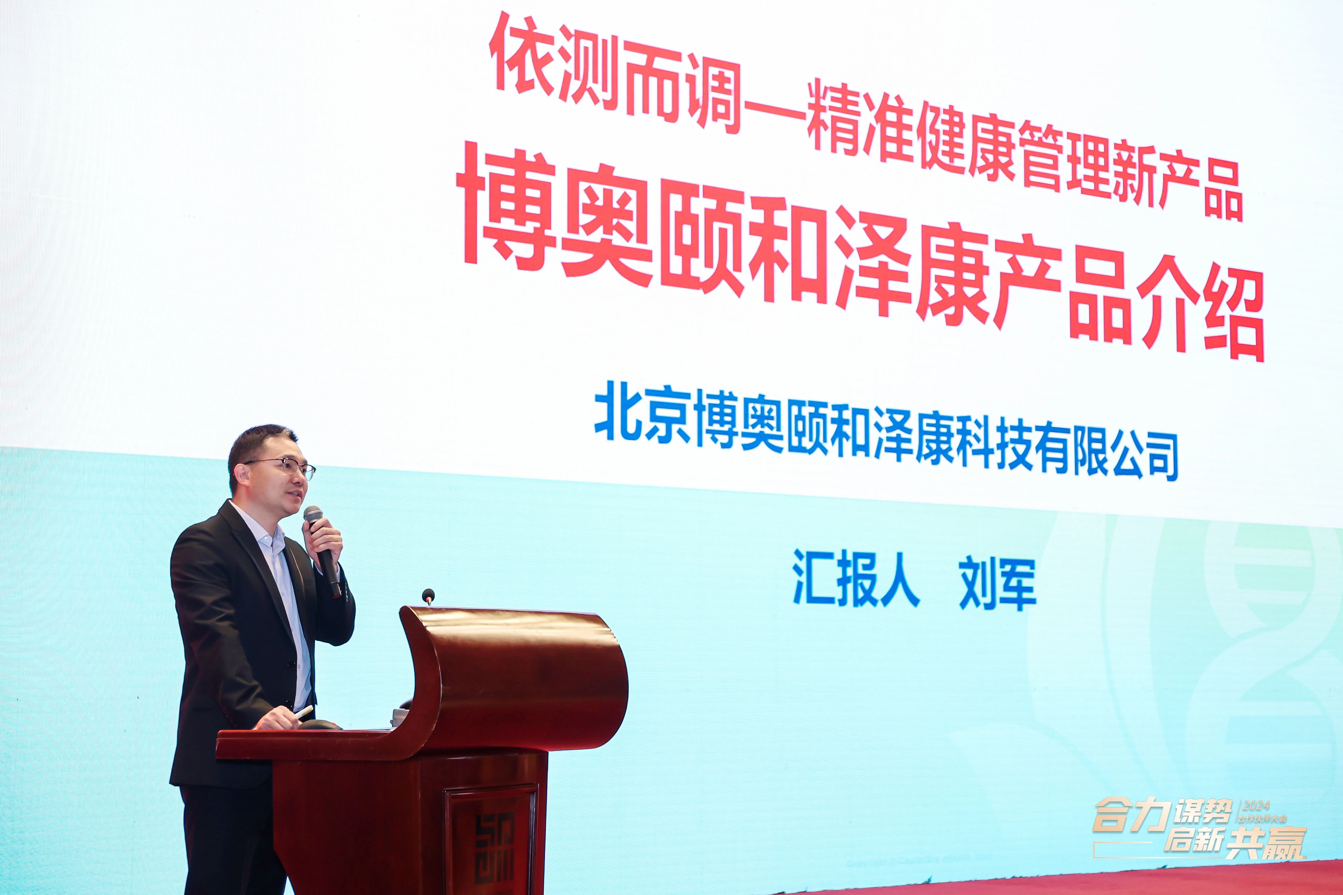博奥颐和泽康副总经理刘军针对健康线产品作了《“依测而调——精准健康管理新产品”博奥颐和泽康产品介绍》报告。作为博奥晶典战略布局大健康领域的主力军和依测而调的精准健康管理模式倡导者,博奥颐和泽康专注于构建可持续发展的中国人精准健康管理生态系统,秉承“依测而调”的理念,全面融合生物技术、人工智能(AI)、云计算等新技术。他重点推介了颐和泽康布局肿瘤、心脑血管代谢类等重大慢性疾病防控的精准管理新模式、新服务及新产品,详细介绍了核心产品和服务所涵盖的疾病预防、预测、早期筛查、健康监测、健康调理等复合业态。
