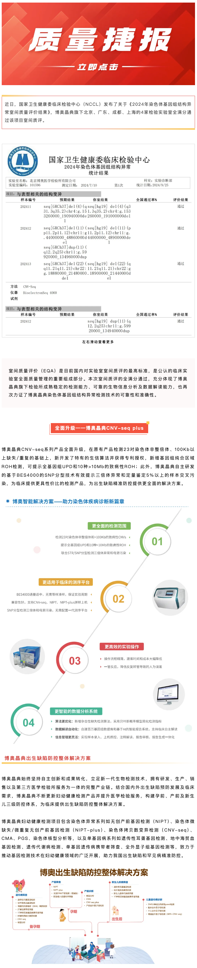 质量捷报 | 博奥j9九游会官网旗下检验所满分通过2024年NCCL染色体基因组结构异常室间质评