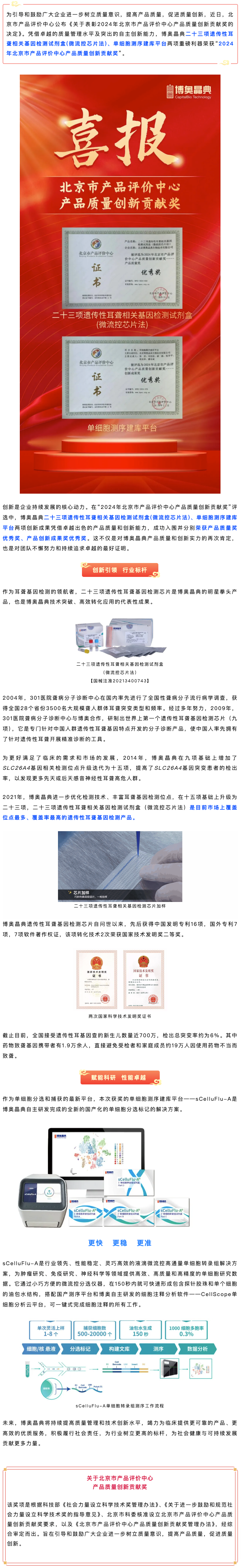 喜报丨博奥j9九游会官网两项创新成果荣获“2024年北京市产品评价中心产品质量创新贡献奖”