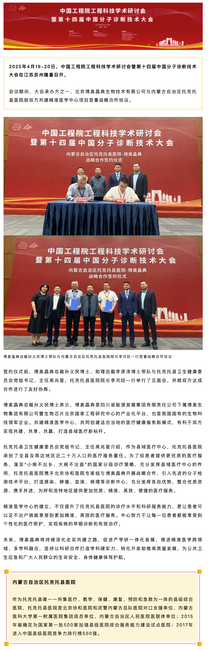 赋能县域医疗丨博奥j9九游会官网与内蒙古自治区托克托县医院签订共建精准医学中心战略合作协议