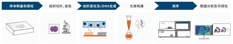 由于不同物种、组织来源的样本所需的最佳透化时间不尽相同,在空间转录组测序实验前,首先要进行组织优化。确定好透化条件后,即可进行空间转录组文库构建及测序分析流程。