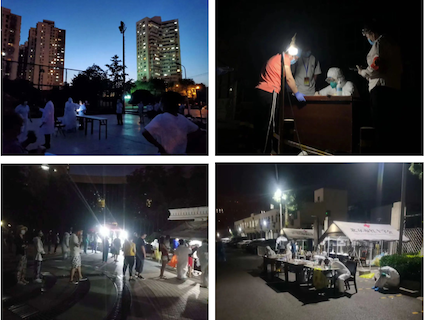 紧张有序的采样现场,随处可见博奥工作人员的忙碌身影,接连几日,从上午7、8点一直忙碌到凌晨4、5点,37度的高温下,数百名博奥人始终坚守一线。