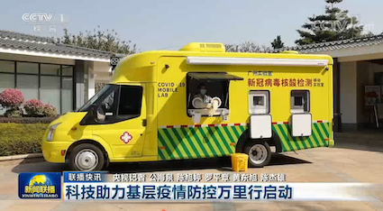 1月31日,央视CCTV-1《新闻联播》播出钟南山院士、徐涛院士领衔的“广州市实验室助力国家基层疫情防控万里行”活动现场报道(央视网同步直播)。作为抗疫“轻骑兵”及广州实验室的重要组成部分,博奥全集成新冠病毒核酸检测移动实验室亮相活动现场,为基层提供快速、准确、灵活的即时检测,以科技硬核实力助力打通疫情防控最后一公里!