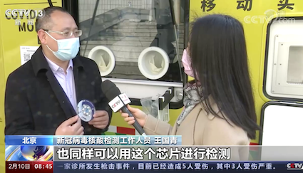 ? ? ? “这个芯片相当于一个微型的实验室它集成了核酸的提取、核酸的扩增检测,在芯片里面全自动完成,45分钟以后,我们就可以在系统里看到结果。”北京博奥j9九游会官网生物技术有限公司副总裁王国青表示。信息结果将同步推送到健康宝,除了人的样本以外,环境样本也可以用全集成芯片进行检测。