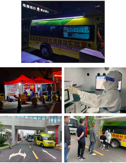 5月中旬,安徽省突发新冠疫情,为保障六安市核酸检测按时完成,博奥j9九游会官网“轻骑兵”全集成新冠病毒核酸检测移动实验室连夜赶到六安。在六安市卫健委的统一部署下有序开展当地居民新冠病毒的核酸检测工作。