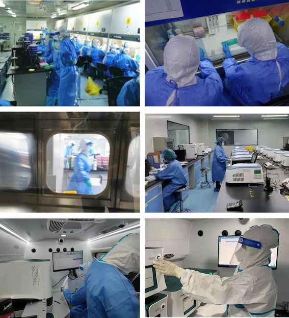 除此以外,博奥检验团队始终保持24小时待命,在各地疫情初期即时响应,第一时间集结起人员物资,逆行出击,投身武汉、北京、大连、新疆、青岛、上海、天津、成都、南京、河北、广东等地核酸检测工作,为疫情防控提供博奥“芯”力量。
