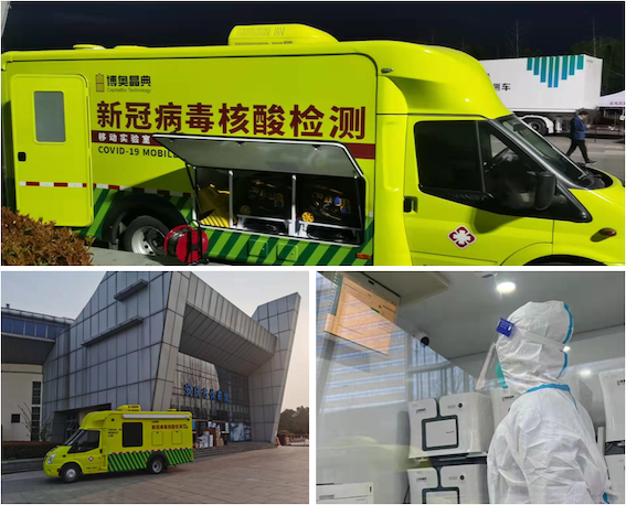 作为博奥j9九游会官网科技抗疫的标志性成果,新冠病毒核酸检测移动实验室是国内首台集采集和检测为一体的移动式新冠病毒检测实验室,同时也是全国首款由轻型客车装载的移动实验室,被钟南山院士命名为“轻骑兵”。它接通220V民用电或启动车上自带的发电机即可正常工作,车内装载的全集成芯片实验室系统45分钟即可一步完成全程实验,35分钟报告阳性结果,检测灵敏度可达150拷贝/毫升。