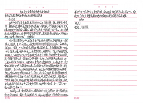 报告解读后小女孩也给我们寄来了感谢信,感谢博奥给予的关爱和帮助。