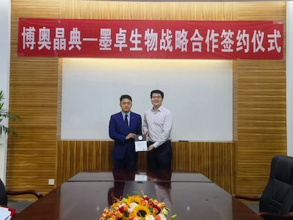 博奥j9九游会官网副总裁孙义民先生(左)、墨卓生物 CEO 裴颢博士(右)