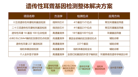 为建立早期、有效的针对查明致聋病因的实验室检测方法,2003年,解放军总医院聋病分子诊断中心在国内开展全国聋病分子流行病学调研并发现GJB2、SLC26A4、线粒体基因、GJB3等是耳聋最常见的基因,且主要以隐性遗传及母系遗传为主。2009年,在对全国28个省份3500名大规模聋人群体耳聋基因突变类型和频率研究的基础上,解放军总医院聋病分子诊断中心与博奥生物集团有限公司合作研制出了世界上第一个遗传性耳聋基因检测芯片产品。该产品能够检测先天性耳聋、药物性耳聋、迟发性耳聋相关的致聋基因位点,具有准确、灵敏、高效、稳定等特点,解决了痕量样品基因检测的难题,同步研制出全套适合大规模筛查的配套仪器及整体解决方案,使中国人率先拥有开展遗传性耳聋精准诊断的工具,在婚育指导、产前筛查、新生儿和高危人群筛查、耳聋病因诊断等领域广泛应用。