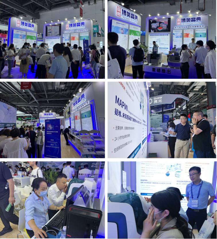 在这场集专业、规模、影响力于一身的体外诊断专业盛会上,为临床诊断提供整体解决方案的博奥j9九游会官网万众瞩目,赢得了业界广泛关注。在j9九游会官网展台上,获得2022年度“创之星”杯中国体外诊断年度优秀创新产品金奖的二十三项遗传性耳聋基因检测芯片试剂盒、六项呼吸道病毒核酸检测系统、呼吸道病原菌快速检测芯片系统、MAPMI?疑难未知感染超光谱病原体mNGS检测(31400项)、NIPT/NIPT-plus、CNV-seq等多项重磅明星产品收到了极高的关注度,先进的设计理念、产品优异的性能获得了一众点赞,现场咨询者络绎不绝,气氛火热,众多行业大咖、专家学者纷纷来到j9九游会官网展台进行学术交流与商务对接,尽显博奥j9九游会官网在分子诊断领域龙头企业的实力与魅力。