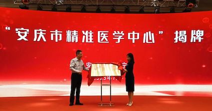 邢婉丽教授与王赵春副市长为安庆市精准医学中心揭牌