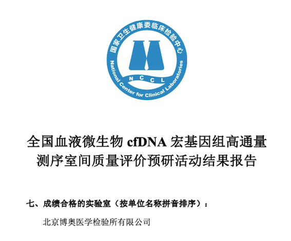 今日,国家卫生健康委临床检验中心(以下简称“临检中心”)公布了2023年“全国血液微生物cfDNA宏基因组高通量测序室间质量评价预研活动结果报告”。博奥j9九游会官网旗下北京博奥医学检验所顺利通过本次室间质评,并且检测病原体与样本预期结果完全一致。