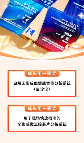 经过初赛、复赛的层层选拔,来自全国的30余支优胜团队从逾百个报名的优质创新项目中脱颖而出,入围决赛。其中“白睛无影成像健康智能分析系统(目诊仪)”和“用于现场快速检测的全集成微流控芯片分析系统”成功突围,荣获成长组一等奖和三等奖的殊荣。 此次获奖是对我们产品创新和研发实力的充分认可及肯定。