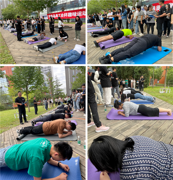 激烈的比赛现场,选手们摆好标准姿势,蓄势待发。随着时间的推移,大家不断突破身体极限,每多一秒都是一份坚持、一份超越,激发了大家敢为人先、不甘落后的斗志。场边围观的员工也被现场的气氛所感染,大声呐喊助威,跃跃欲试。