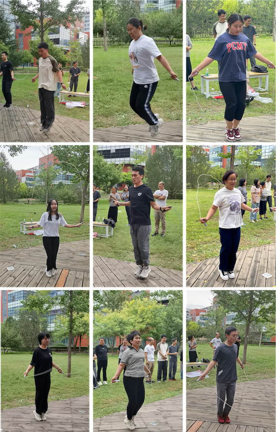 随着裁判起跳命令响起,计时开始,紧张刺激的氛围布满全场,大家挥动双臂、腾挪跳跃,全力以赴比拼速度与耐力。比赛现场笑声欢呼声不断,精彩纷呈。